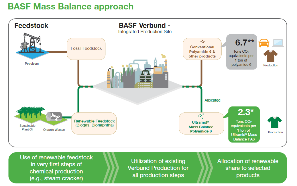 BASF has developed a groundbreaking approach to derive products from renewable raw materials: Certified renewable feedstock is used to replace fossil resources at the beginning of the production process and is then allocated to sales products in the respective quantities.