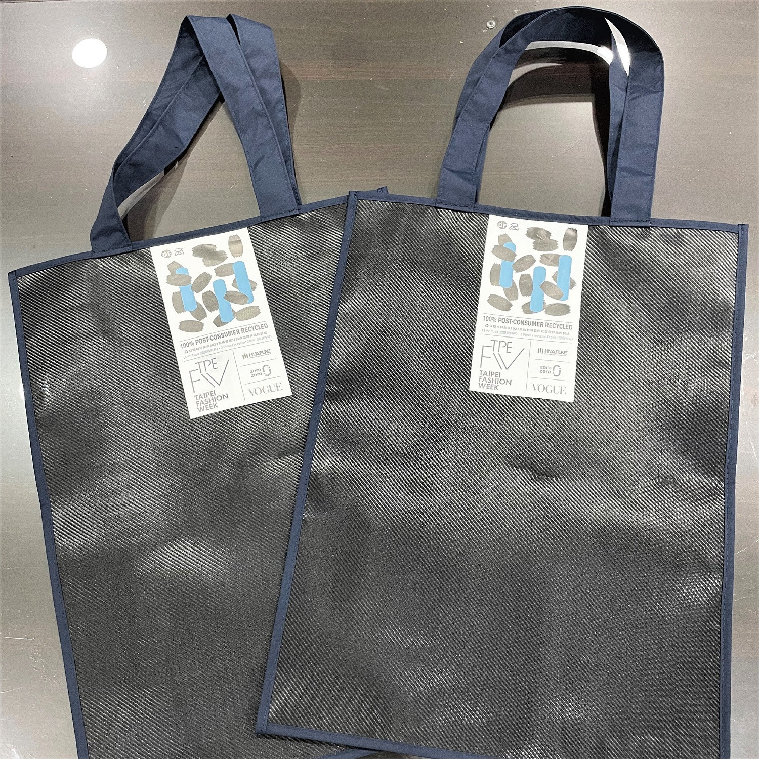 Taipei Fashion Week 2022 x VOGUE Fashion's Night Out presents Recycled Commemorative tote bags as guest giveaways. The tote bags' fabric is waste reuse fabric provided by Hwa Fune.