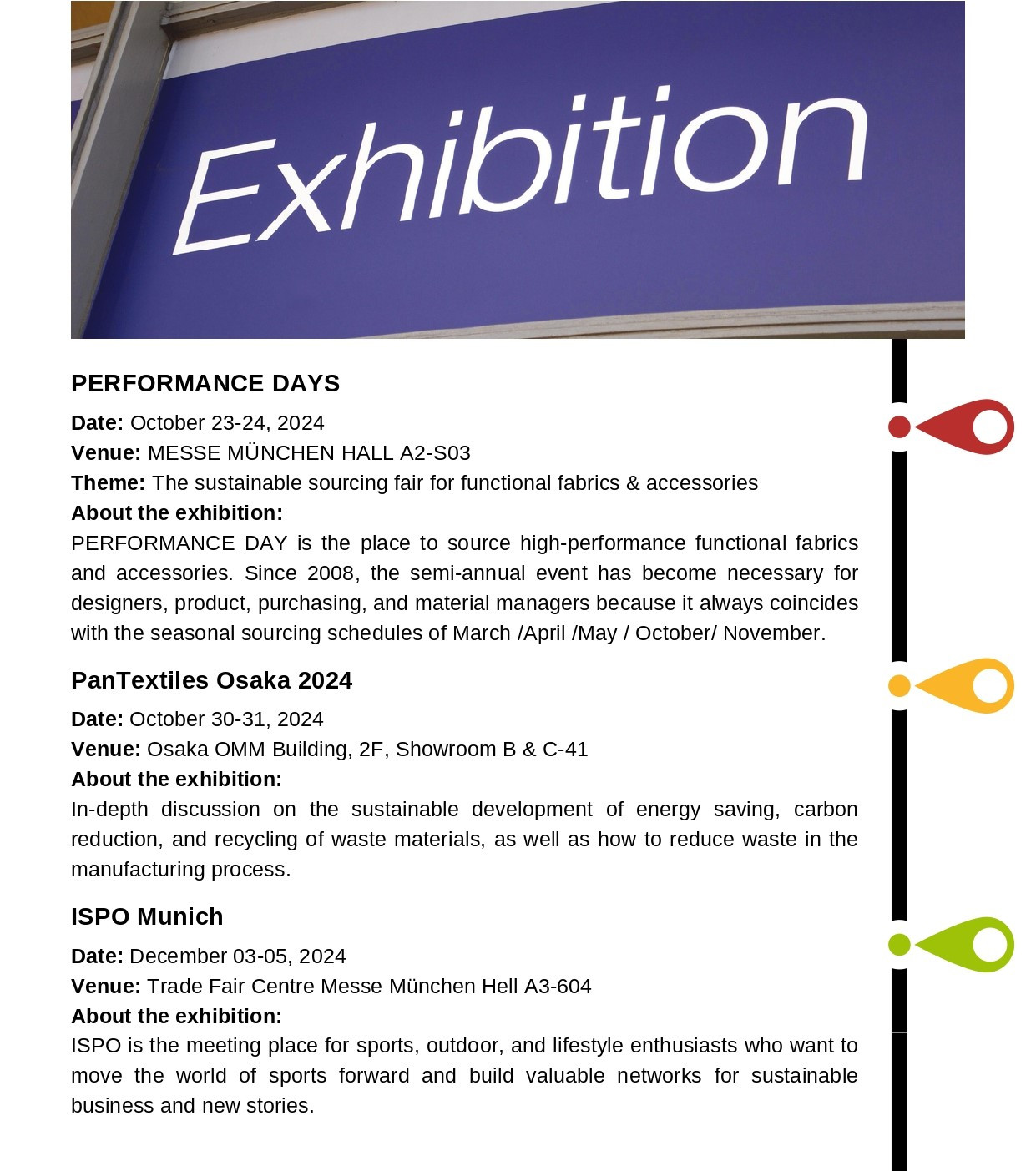 3. Exhibitions in the Second Half of 2024 ( PD、PanTextiles Osaka、ISPO )
