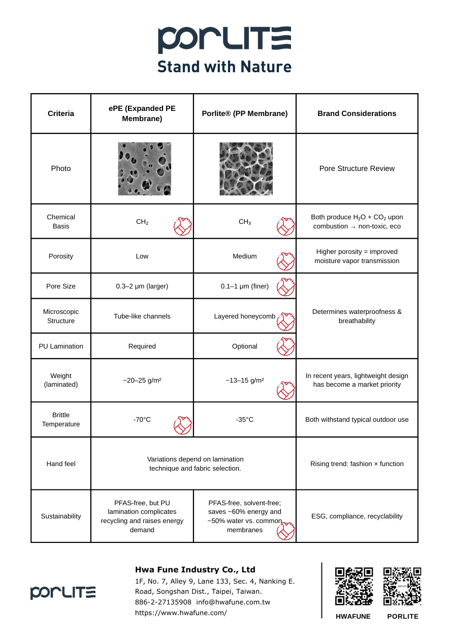 1️⃣ Expanding Market Applications: With highly customizable functional materials, Porlite products are suitable for various industries, including outdoor, watersports, workwear, and casual, meeting diverse needs. 2️⃣ Crafting Compelling Brand Stories: Porlite empowers brands to create distinctive narratives by combining product innovation with sustainability, fostering meaningful consumer connections that strengthen brand identity and appeal. 3️⃣ Prioritizing Technology and Service: Beyond offering cutting-edge functional material technologies, Porlite provides comprehensive after-sales services and technical support to ensure steady market growth for partner brands.
