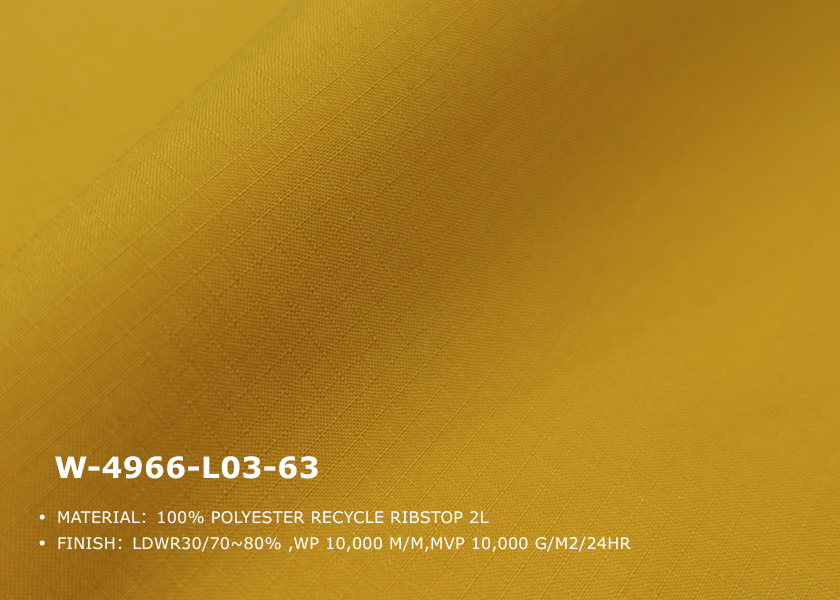 Fabric options include Porlite microporous membranes (PFAS-free, solvent-free) and a variety of recycled functional membranes such as eco (r) poly membranes (TPEE), recycled PU, and recycled TPU—supporting sustainable development across outdoor and activewear applications.